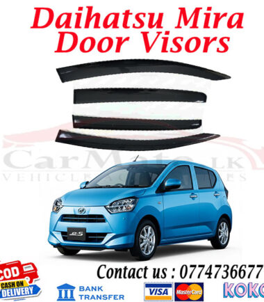 Premium quality Daihatsu Mira full black door visor set designed for stylish appearance, rain protection, and improved ventilation. Durable, easy to install, and perfect for all weather conditions.