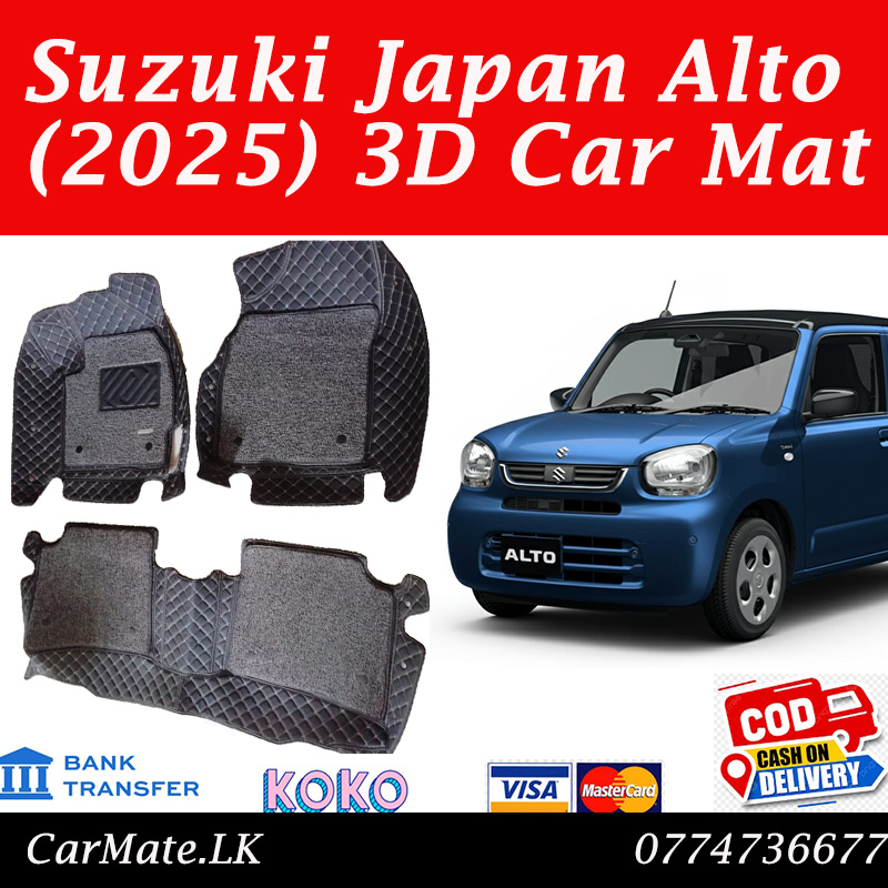 Give your Japan Suzuki Alto 2025 the premium interior protection it deserves with our 3D Custom-Fit Car Mats – a perfect blend of style, comfort, and durability. Designed specifically for the Suzuki Alto 2025 model, these mats are precision-engineered to match the exact contours of your vehicle’s floor, offering complete coverage and protection from dust, mud, spills, and everyday wear. Whether you’re driving in the city or heading out for a long trip, these mats will keep your car’s interior spotless and stylish for years to come.